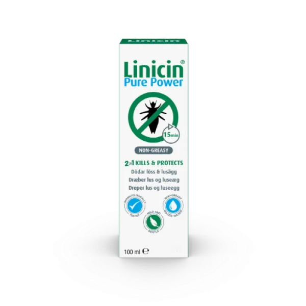 Linicin Pure Power (det enda vattenbaserade lusmedlet på marknaden) dödar både löss och lusägg och förebygger nya angrepp på bara 15 minuter. Linicin Pure Power är vattenbaserat (kladdar inte i håret) och består av mer än 92 % biologiskt nedbrytbara ingredienser.